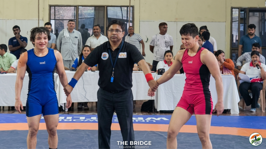 However, Meenakshi held her nerves and executed a strong takedown, followed by a back hold, and finished the match with a pinfall victory.