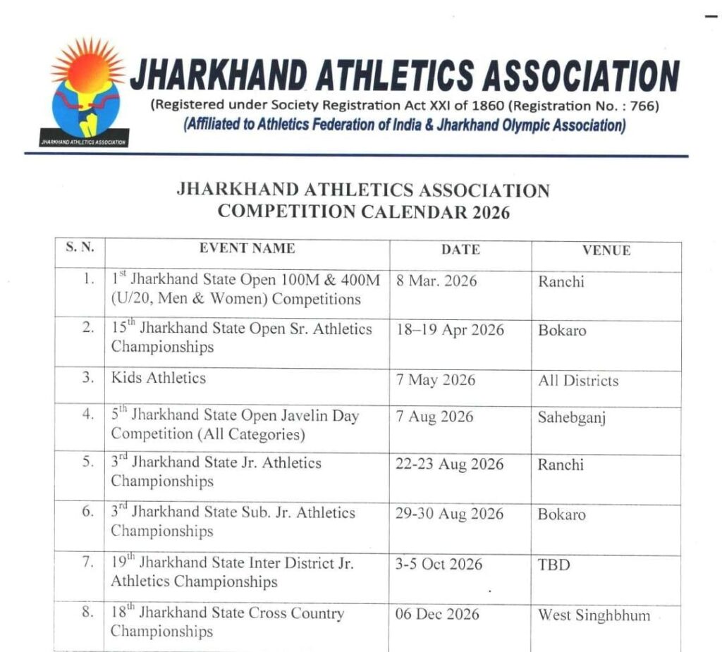 2026 is a golden opportunity for Jharkhand athletes. Multiple competitions are lined up — from beginners to senior level. If you stay consistent, you can make your mark this year.